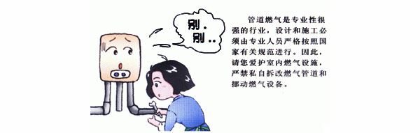 燃?xì)夤艿馈⒃O(shè)備的安裝都是嚴(yán)格按照國(guó)家有關(guān)技術(shù)設(shè)計(jì)、安裝、檢驗(yàn)后才投入使用,以確保供、用氣設(shè)備的嚴(yán)密性及使用安全性。未經(jīng)天然氣公司專(zhuān)業(yè)人員現(xiàn)場(chǎng)勘察、整改、檢驗(yàn),用戶(hù)私自移動(dòng)管線(xiàn)、設(shè)施的安裝位置,其嚴(yán)密性、安全性和耐用性都無(wú)可保障。所以,用戶(hù)的用氣環(huán)境改變或需要對(duì)天然氣設(shè)施進(jìn)行改裝,請(qǐng)及時(shí)聯(lián)系天倫燃?xì)夤?374-2629282進(jìn)行設(shè)計(jì)改裝,用戶(hù)不得擅自移動(dòng)天然氣設(shè)施及擴(kuò)大用氣范圍、改變用氣性質(zhì)。