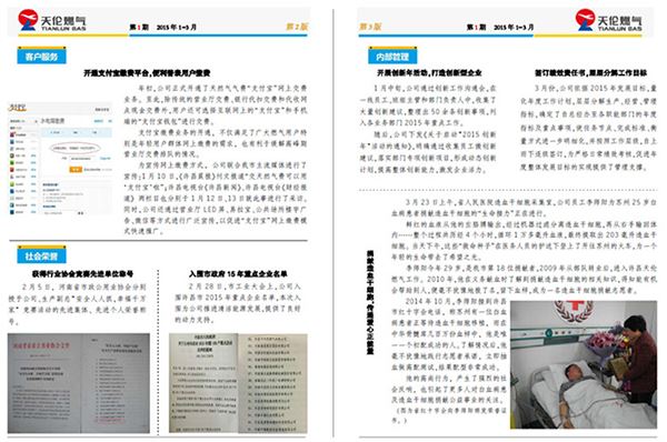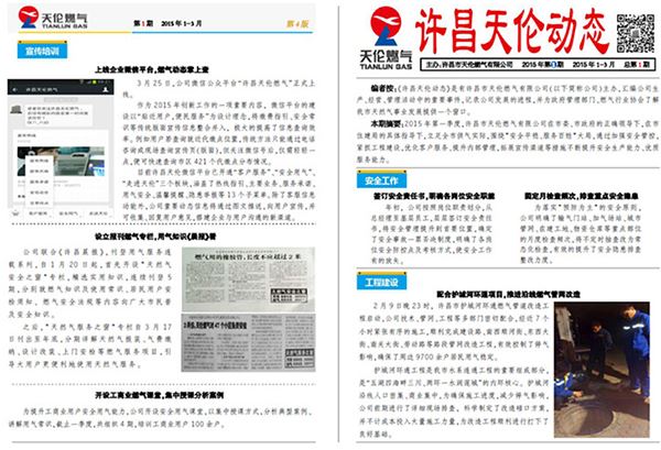 《動態(tài)》作為許昌公司2015創(chuàng)新年活動的落實事項之一,計劃以季刊的形式,為公司對外宣傳特別是為政府主管部門了解許昌天然氣事業(yè)發(fā)展又提供了一個的新窗口,也得到了市住建局領(lǐng)導(dǎo)及監(jiān)管中心、局辦公室、城建科等業(yè)務(wù)科室的肯定。