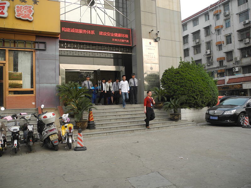 許昌市天倫燃?xì)庥邢薰疚飿I(yè)人員接到擬定的大廈火災(zāi)報警后,第一時間趕到現(xiàn)場,首先利用滅火器進(jìn)行了初期火苗控制,同時將火情上報總經(jīng)理,針對火情,總經(jīng)理下達(dá)啟動消防預(yù)案指令,物業(yè)人員迅速啟動消防警報、關(guān)閉樓層電源,電梯迫降1樓。