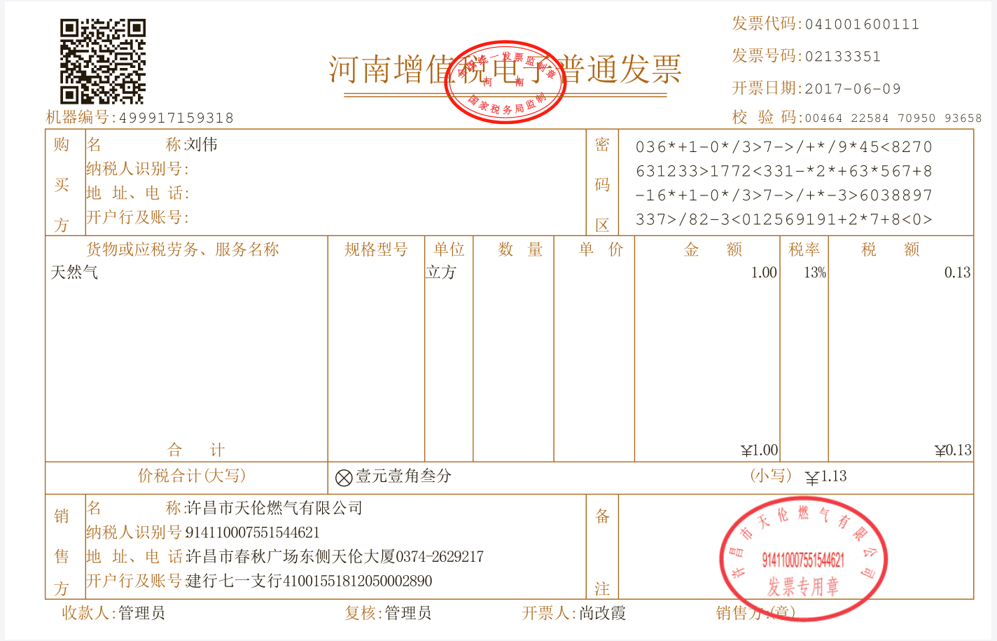 2017年6月12日上午,許昌天倫首張?jiān)鲋刀愲娮影l(fā)票通過(guò)百望“電子發(fā)票服務(wù)平臺(tái)”成功開(kāi)具!電子發(fā)票清楚地標(biāo)明了產(chǎn)品名稱(chēng)、價(jià)格信息等,與傳統(tǒng)紙質(zhì)發(fā)票一樣,但可實(shí)現(xiàn)用戶(hù)在任何地點(diǎn)通過(guò)網(wǎng)絡(luò)進(jìn)行打印,打印發(fā)票可以入賬,其法律效力、基本用途、使用規(guī)定與傳統(tǒng)紙質(zhì)發(fā)票相同。