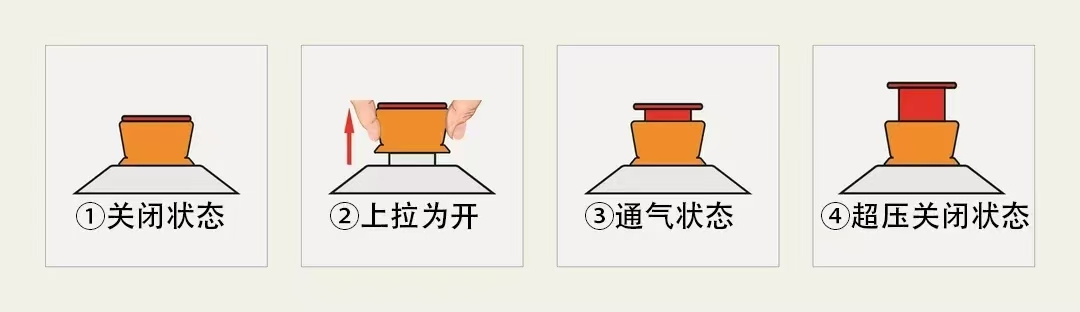 第二步:提拉自閉閥的黃色旋鈕(如圖②所示),此時若紅色旋鈕處于圖③所示狀態(tài),說明自閉閥正常通氣,可正常用氣;